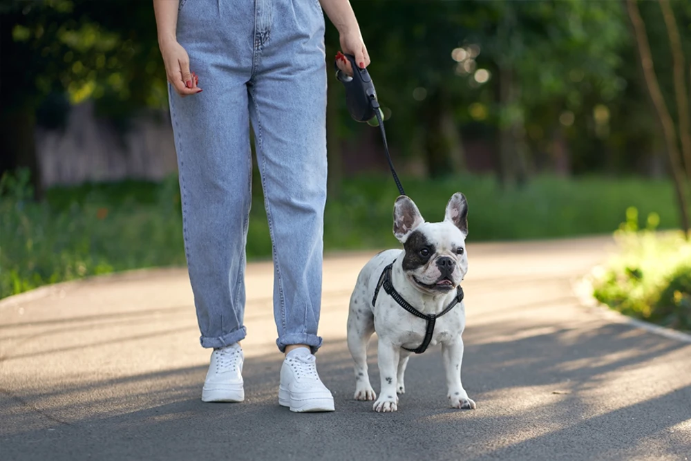 - Evita el uso de collares y correas retráctiles. Los collares ejercen presión sobre el cuello del cachorro y pueden causarle molestias o incluso lesiones, sobre todo si tira durante el paseo y las segundas pueden dificultar el manejo del paseo y aumentar el riesgo de accidentes.