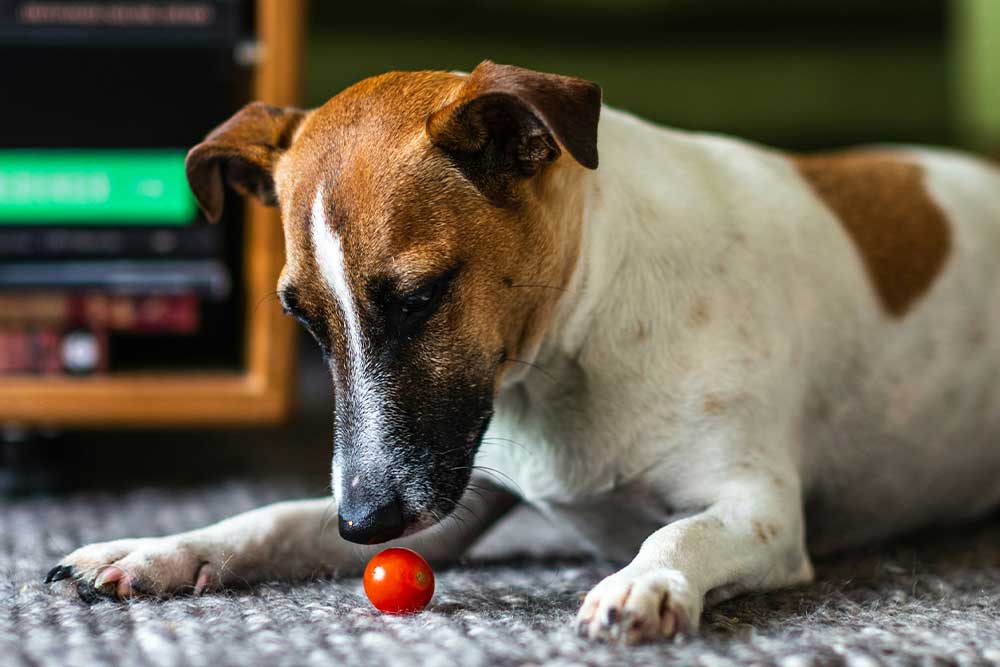 - Tomate: El tomate contiene algunos compuestos como la solanina y tomatina que pueden causar indigestiones en los perros. En este blog te contamos más sobre como dar o no tomate a un perro.