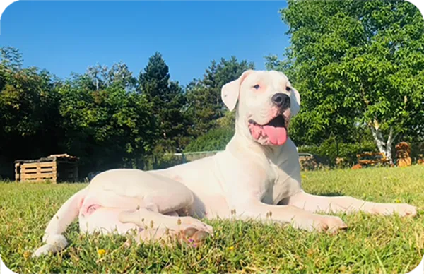 A pesar de su aspecto robusto e imponente, el Dogo Argentino es un perro equilibrado y afectuoso con su familia. Es un perro inteligente, confiado y con un fuerte instinto protector, lo que lo convierte en un excelente guardián para el hogar.