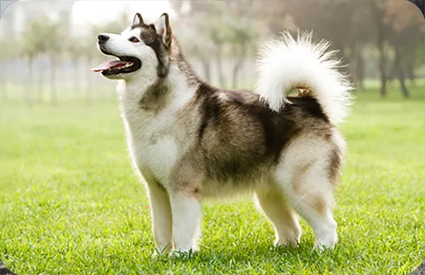 Tamaño: El Alaskan Malamute es un perro de gran tamaño, con una estructura corporal fuerte y robusta. Su altura y peso lo convierten en uno de los perros de trineo más imponentes.