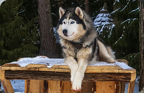 Características físicas: Cuenta con una cabeza ancha y orejas triangulares erectas, ojos marrones en forma de almendra y una cola curvada sobre la espalda. Su complexión fue seleccionada para soportar trabajos pesados en climas extremos.