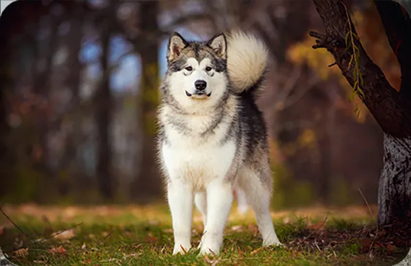 Colores de pelaje: El pelaje del Alaskan Malamute puede variar entre combinaciones de blanco y negro, gris, sable o incluso rojo. Siempre presentan un pecho blanco y marcas distintivas en la cara.