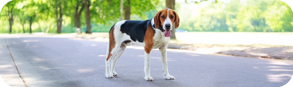 Colores de pelaje: El pelaje del American Foxhound es corto y denso, lo que le proporciona protección en diversas condiciones climáticas. Los colores más comunes incluyen el tricolor (negro, blanco y marrón), así como combinaciones de blanco y negro, y marrón claro. Esta variedad de colores no solo es estética, sino que también refleja la diversidad genética de la raza.
