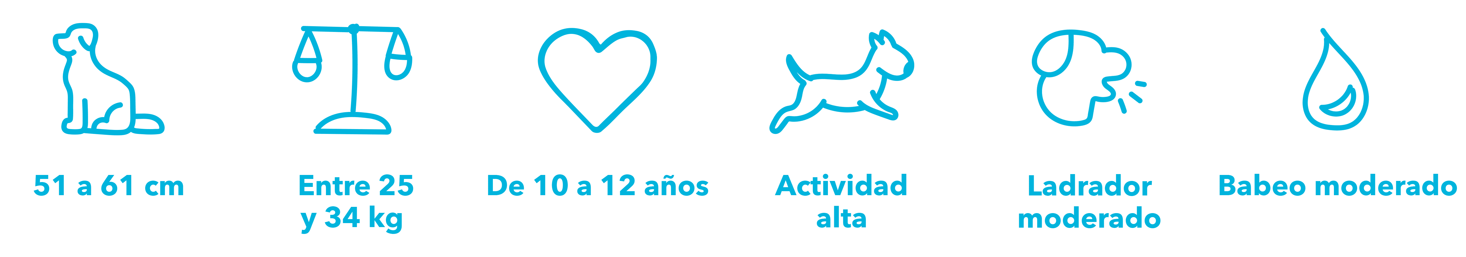Entre 51 y 61 cm de altura y de 25 a 34 kg de peso, dependiendo del sexo