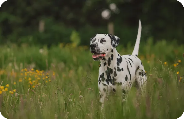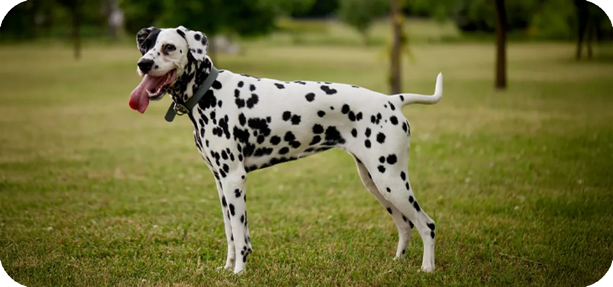 Conocido por su resistencia y agilidad, el Dálmata destaca por su carácter juguetón y sociable. Es un perro inteligente que requiere estimulación física y mental para mantenerse feliz y equilibrado.