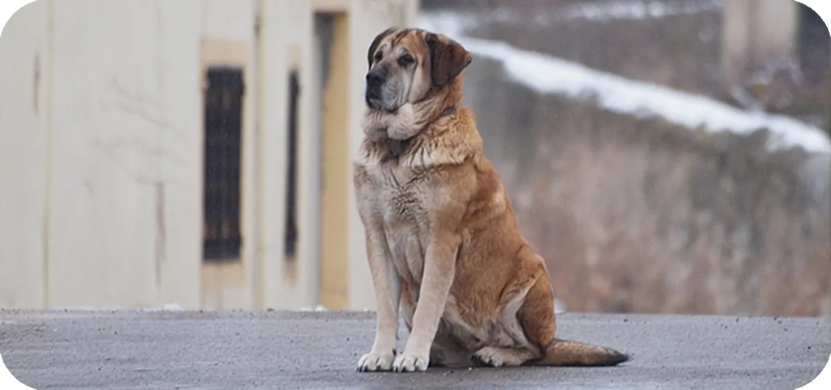 Tamaño: El Mastín Español es un perro de gran tamaño, con una estructura robusta y musculosa que refleja su fuerza y resistencia.