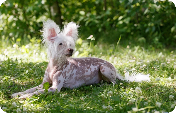 El Crestado Chino tiene un pelaje especial que requiere cuidados regulares.