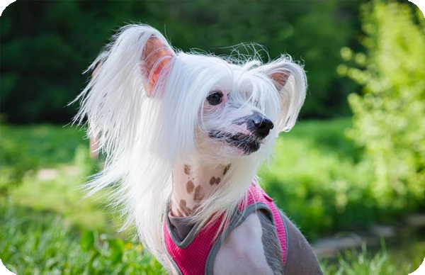 El Crestado Chino sin pelo: es el más conocido y se distingue por su piel expuesta, que puede presentar manchas o marcas de color. Este tipo de Crestado es ideal para quienes buscan un perro que requiera menos mantenimiento en cuanto a cuidados de pelaje, aunque es importante proteger su piel del sol y el frío.