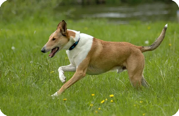 Características físicas: Tiene cuerpo proporcionado, cabeza cuneiforme, hocico largo, orejas semi-erguidas y ojos expresivos que reflejan su inteligencia.