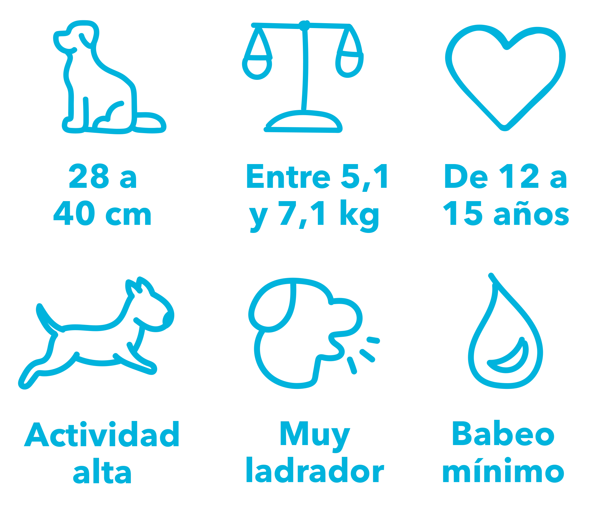 Tamaño: Es un perro pequeño-medio, con una altura de 25 a 28 cm y un peso entre 5 y 7 kg, ideal para quienes buscan un compañero activo y manejable.
